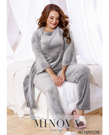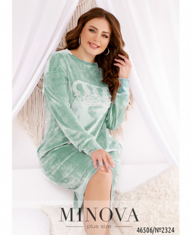 М'який і зручний домашній костюм, виконаний з шовковистого велюру, дозволить вам відчувати себе максимально комфортно і привабливо. У комплект входять однотонні штани-джогери на резинці з кишенями і манжетами, а також лаконічний світшот в тон з декоративним принтом і рукавами-реглан, доповненими манжетами.