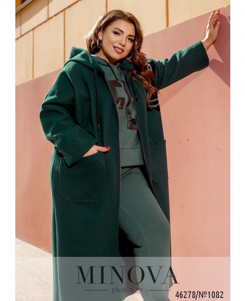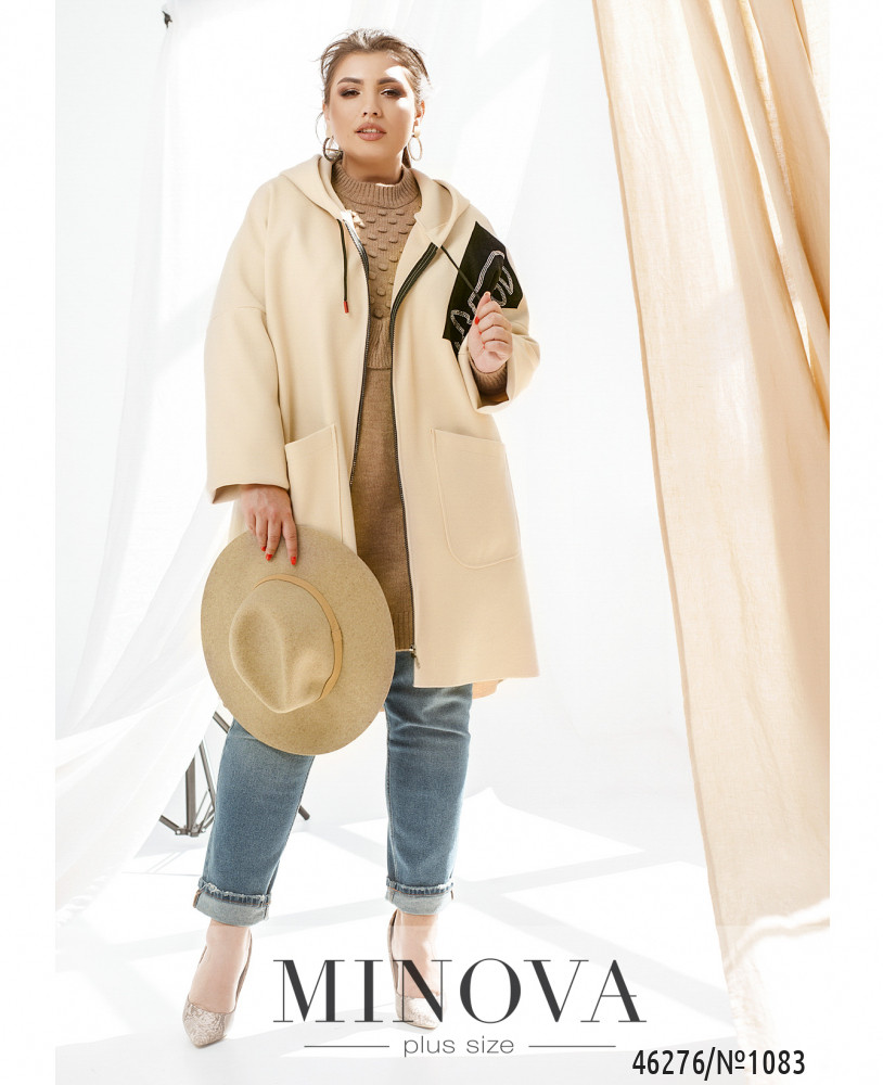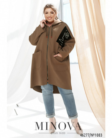 М\'який та привабливий повсякденний довгий кардиган батал з капюшоном, через капюшон пропущено шнурок. На лівому боці грудей - декоративна нашивка, прикрашена візерунком із страз. З боків - місткі накладні кишені. Без підкладки.