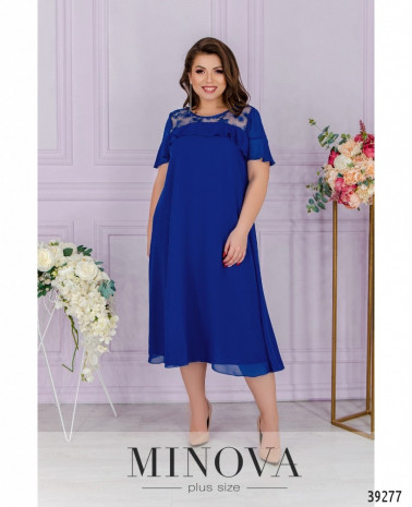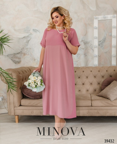 Минималистичное и элегантное платье батал, идеальное для базового гардероба. Подол подшит к верху, состоит из двух слоёв: шифонового, с длинными вырезами по бокам, что создаёт разлетающийся эффект, и мягкого нижнего. Вырез горловины полукруглый, рукава с небольшими подворотами. По бокам - врезные карманы, застёжек нет.