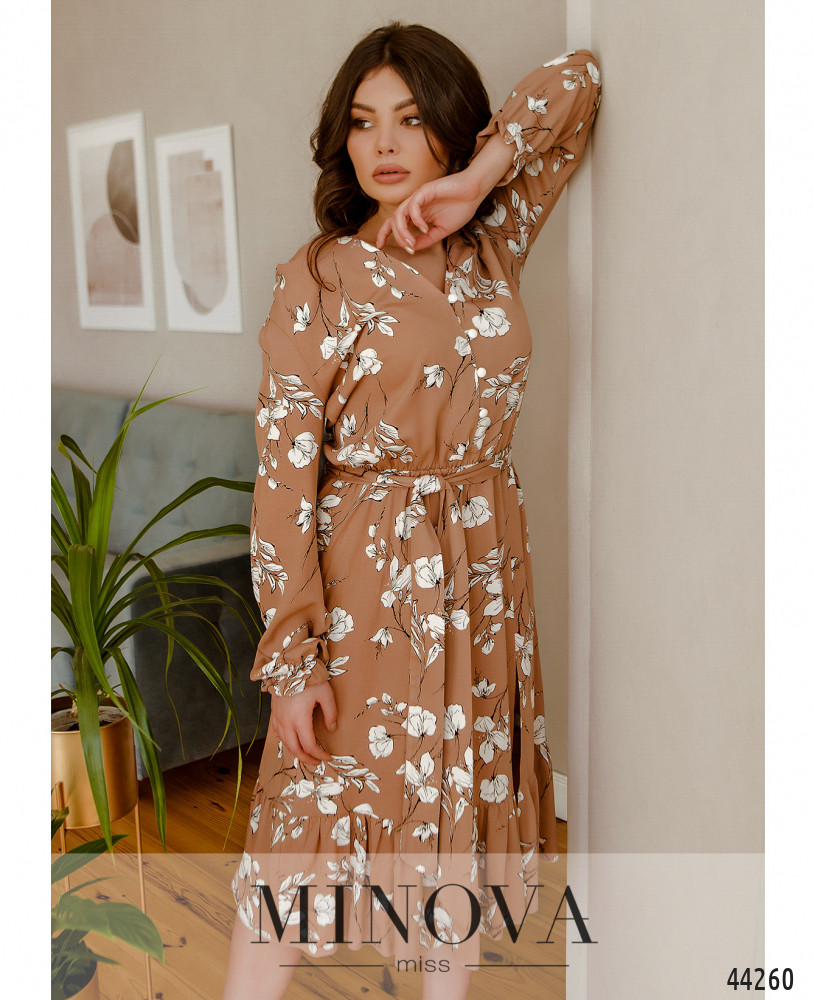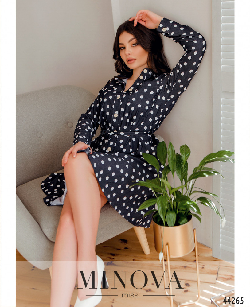 Элегантное платье-рубашка, украшенное кружевом на плечах спереди и по спинке. Карманов нет, застёжка - ряд пуговиц спереди на планке, от воротничка до низу. Рукава с удлинёнными манжетами, на них по одной пуговке. В комплекте пояс в тон.