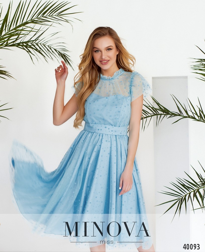 Елегантна сукня з вільним запином та вшитою до поясу резинкою. В комплекті пояс в тон сукні. Без застібок та кишень, поділ плісований. Рукава вільні, розкльошені. Пояс/аксесуар в комплекті.