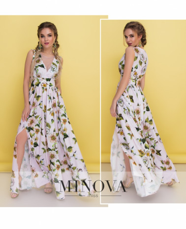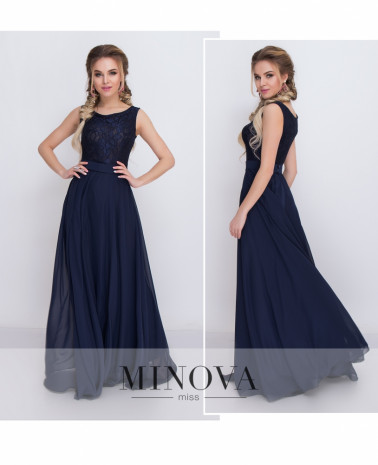 Очаровательное платье в пол - прекрасный выбор для торжественных мероприятий. Нежное и девичье платье состоит из кружевного двухслойного лифа без рукавов и отрезного шифонового подола. Талия подчеркнута шифоновым съемным поясом на пуговицах. Платье застегивается на скрытую боковую молнию.