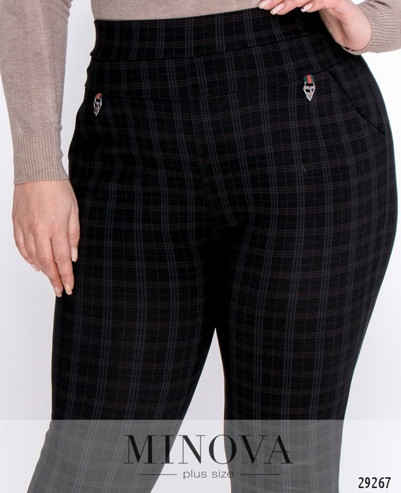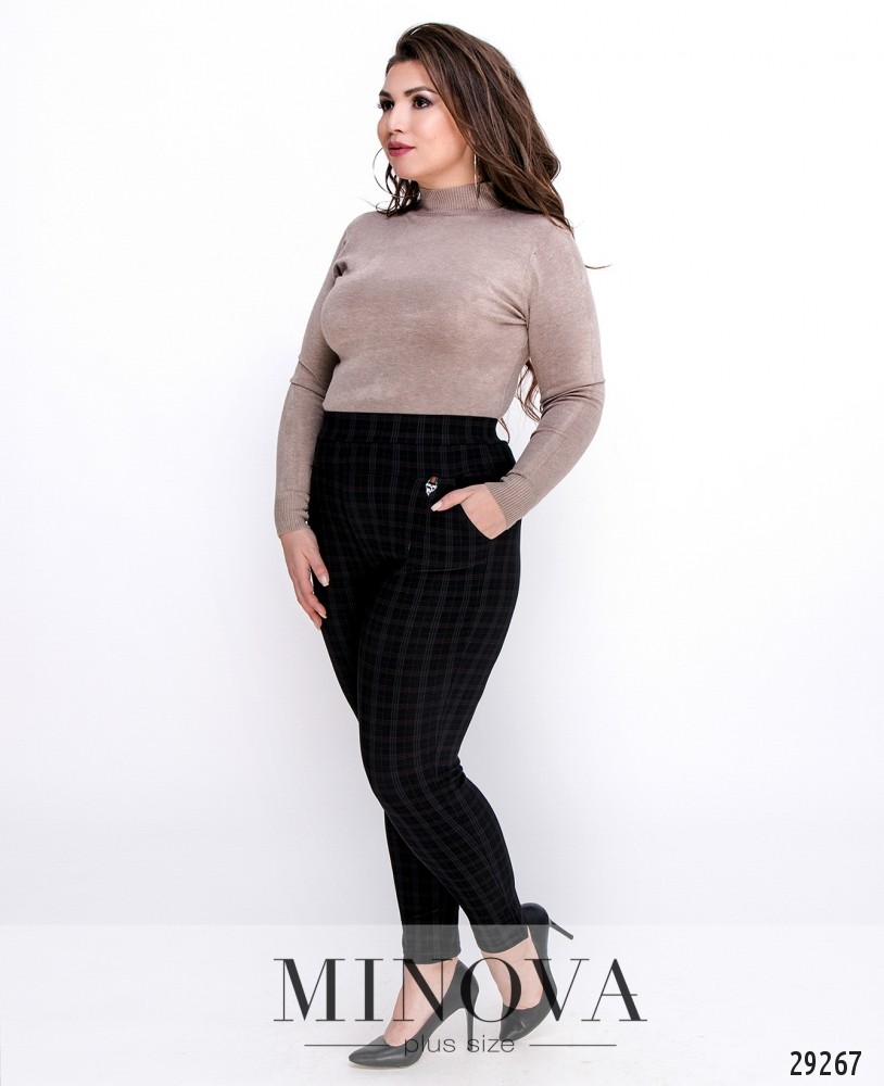 Эластичные брюки –лосины в клетку. Брюки на высокой посадке с эластичным поясом-резинкой. Брюки дополнены карманами и декоративными деталями.