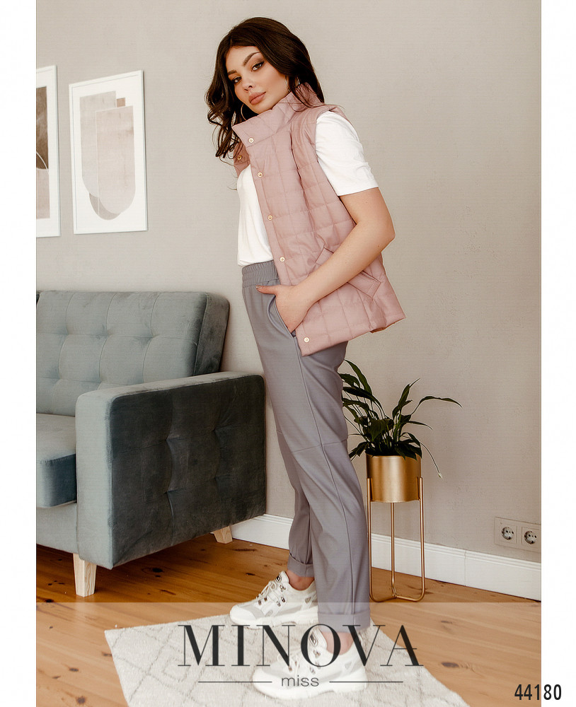 Элегантные и удобные брюки с карманами в шве, в пояс вшита резинка, изнутри - гладкий подкладочный слой. На бёдрах - декоративные швы, под поясом - декоративная ширинка. Снизу подвороты.