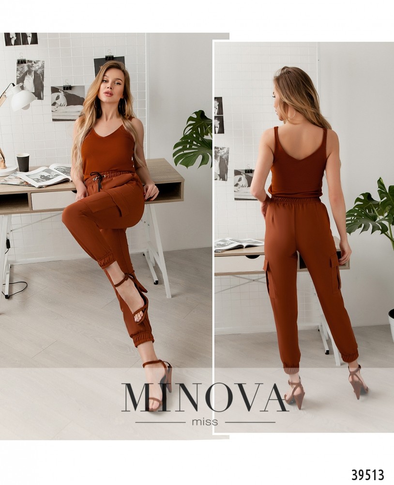Удобные повседневные брюки с высокой посадкой, в пояс вшит шнурок и резинка, манжеты также с резинкой. По бокам - врезные карманы на талии и накладные - на уровне колена. Шнурки с металлическими эглетами. Ещё недавно джоггеры считались спортивными брюками. Но сегодня этот вид брюк выполнен из костюмной ткани и прекрасно сочетается с блузками. Данный модный образ в классическом стиле очень удобен.
