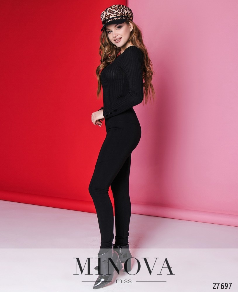 Легинсы с фигурными декоративными швами. Пояс представлен широкой плоской резинкой.