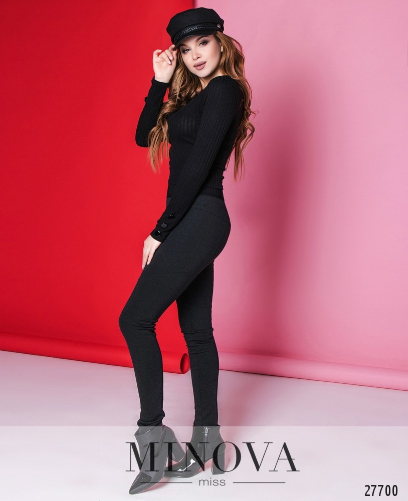 Легинсы с фигурными декоративными швами. Пояс представлен широкой плоской резинкой.