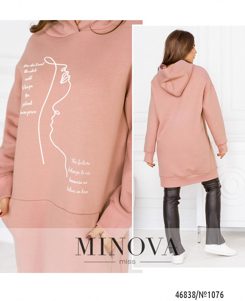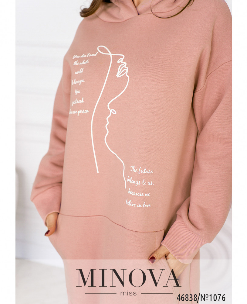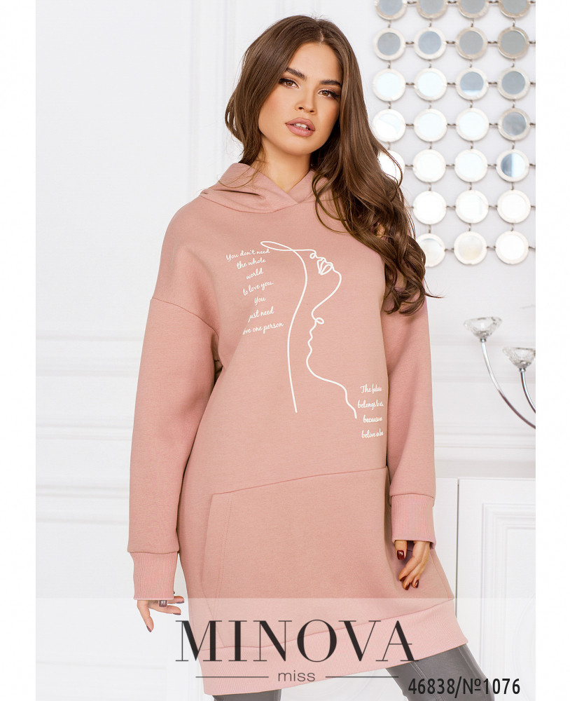 Стильная комфортная туника с принтом отличается универсальностью, а также удачно вписываются в любой стиль. Модель свободного кроя дополнена длинными рукавами с приспущенной линией плеч и капюшоном.