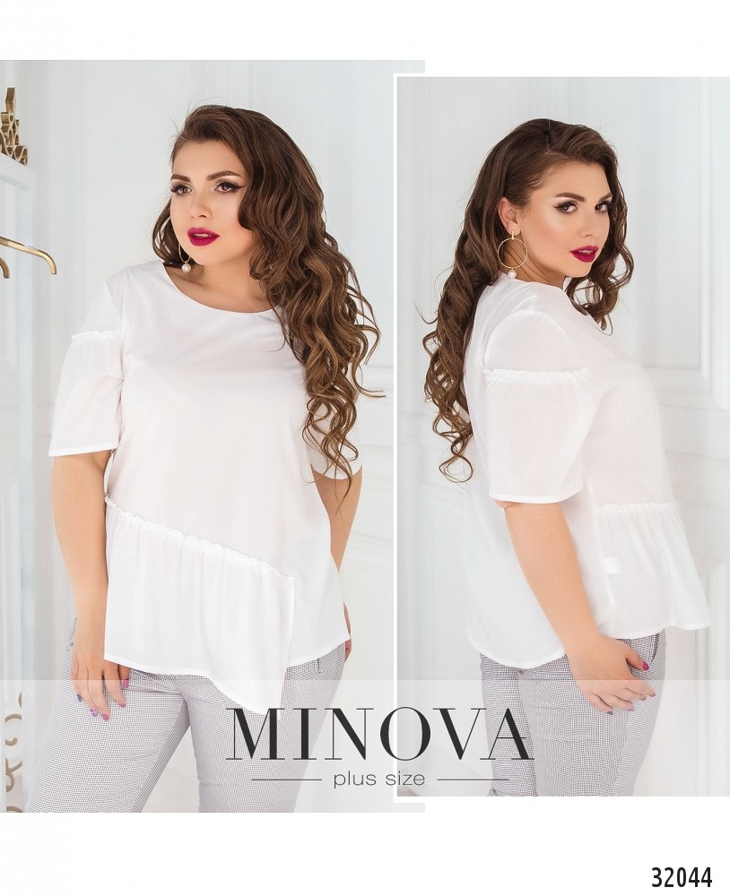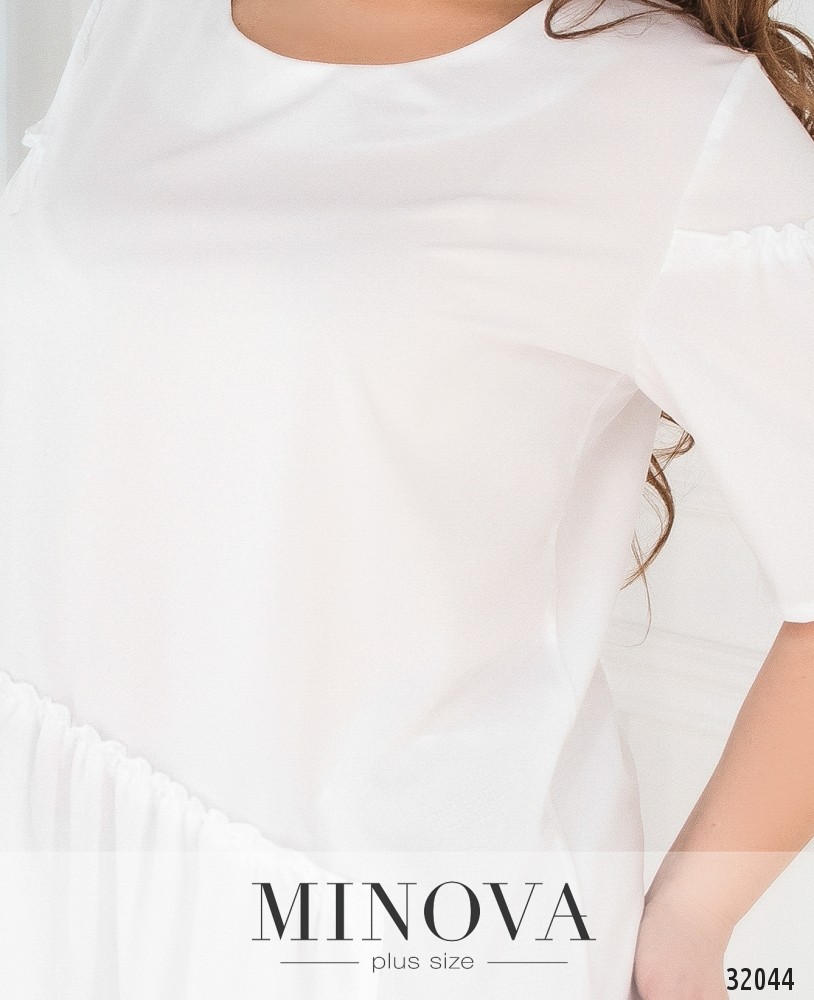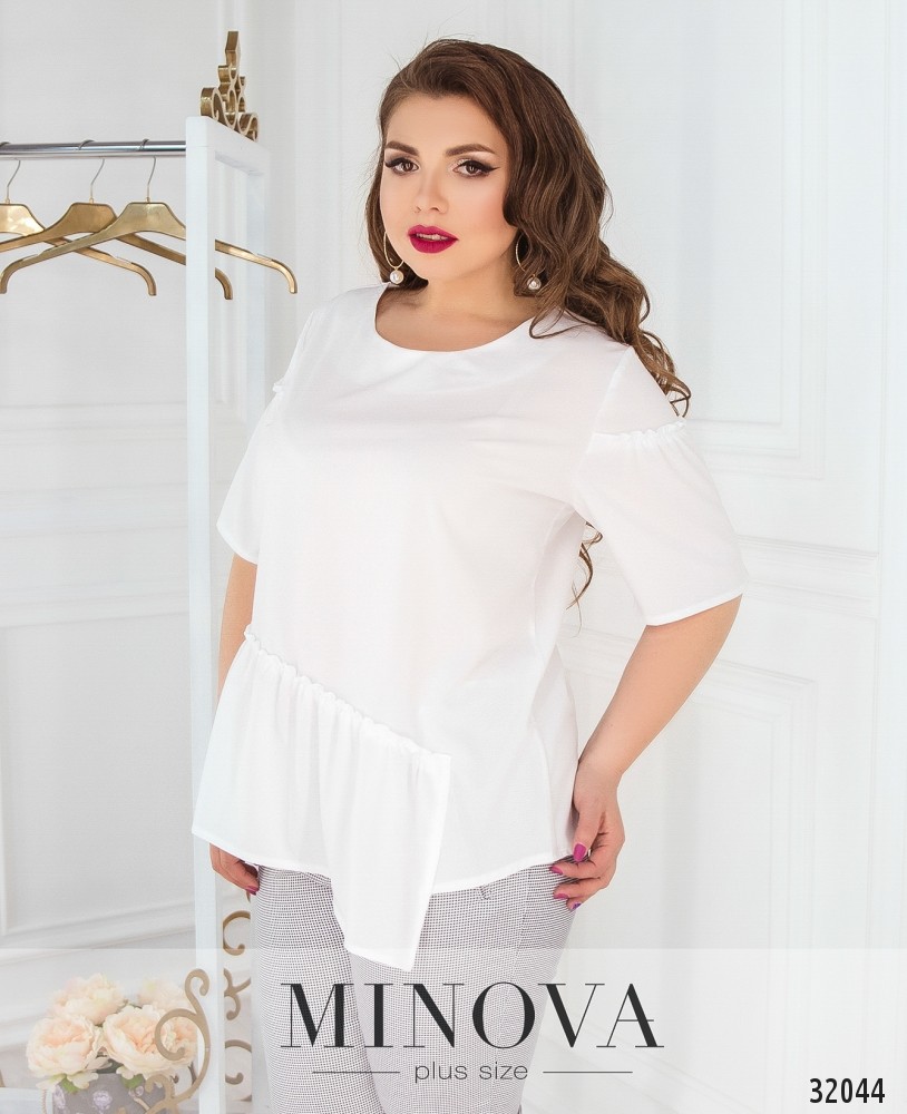 Романтичная блуза с рукавами-воланами и асимметричной драпировкой. Блуза свободного кроя украшена мелкой оборкой на рукавах и драпировке.