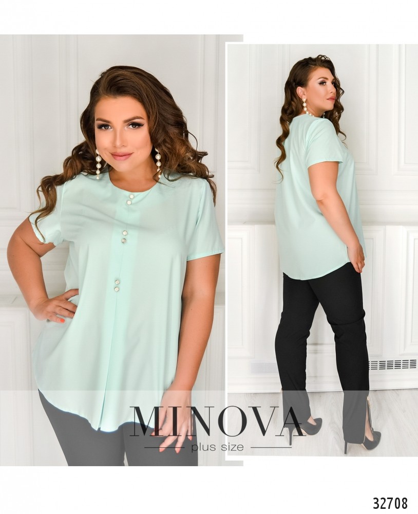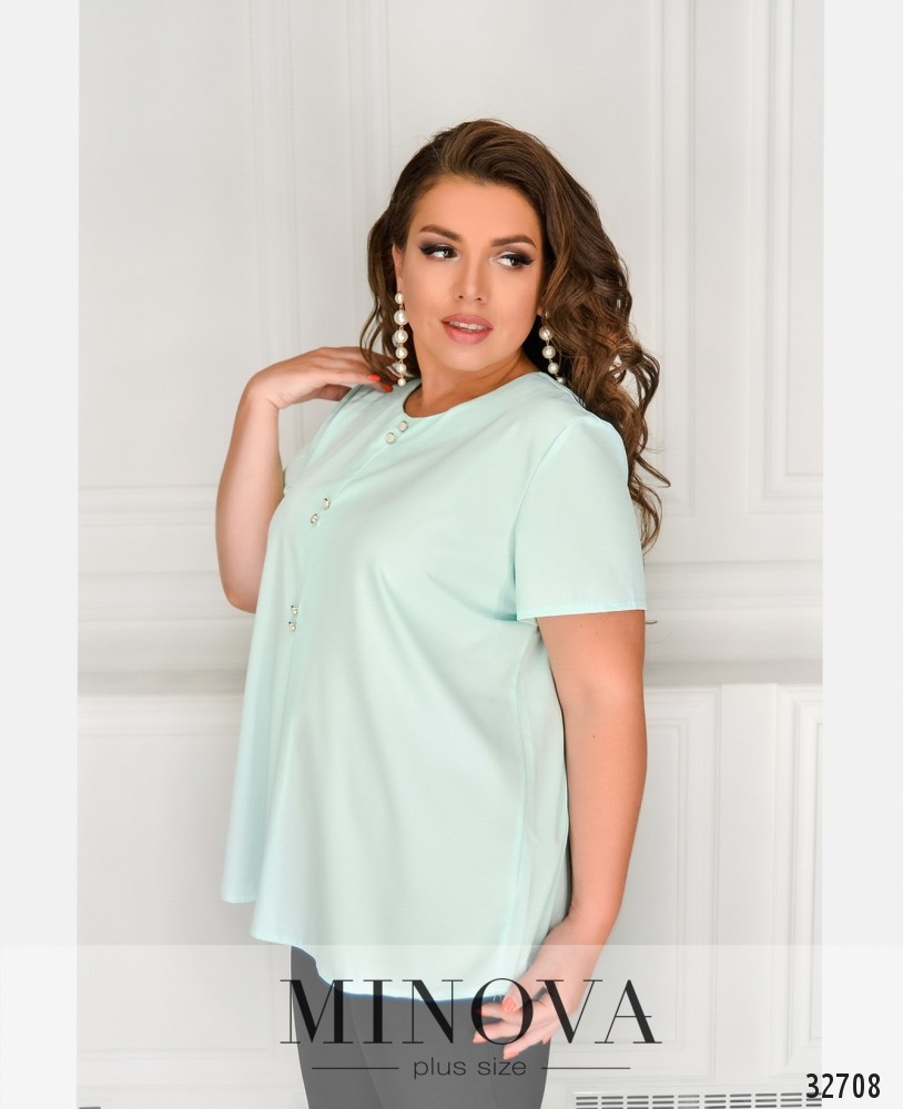 Летом так приятны лёгкие, воздушные, свободные наряды. Особенно, если весь день нужно провести в офисе или не менее официальной обстановке. Представленная блузка большого размера из новой летней коллекции Minova как раз пригодится: её ткань очень нежная и приятная к телу, а выбрать можно классические чёрный, белый цвета, или более нарядный светло-мятный. Украшена небольшими декоративными пуговками, сзади застёгивается тоже на пуговицу. Рукава свободные, вырез горловины широкий, неглубокий. Удачно сядет на «яблочную» или «треугольную» фигуру.