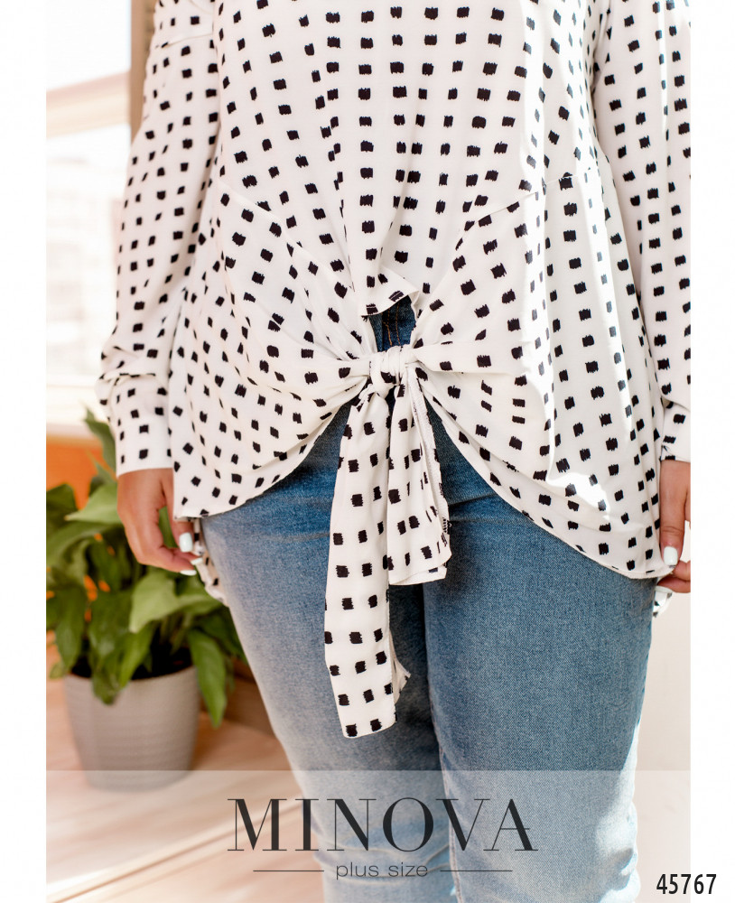 Яркая стильная рубашка с воротником и длинными рукавами с манжетами создает не только красоту, уверенность и комфорт, но и подчеркивает индивидуальный стиль. Изюминкой данной модели является ассиметричный подол, удлиненный по спинке, и завязки спереди.