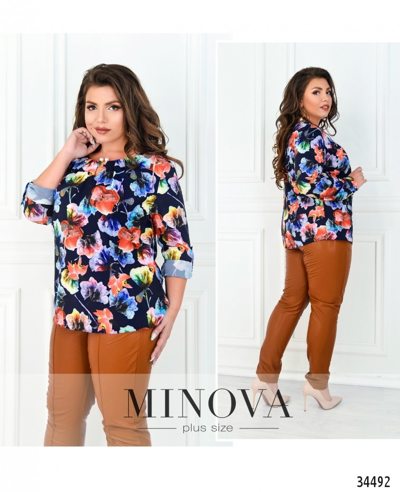 Любите яркость? Броские художественные акварельные цветы идеально выразят ваше мировоззрение! Предпочитаете более классические варианты? Можете выбрать принт в мелкие шестиугольники типа пчелиных сот на нежном пастельном фоне. И всё это – блузы батал из лёгкой ткани свободного кроя, представленные в новом каталоге Minova. Блуза присобрана на вырезе горловины, а потому создаётся А-силуэт. Рукава полной длины, но их можно регулировать с помощью ленты и пуговки, укорачивая до длины ¾. Застёжек нет, на горловине небольшой каплеобразный вырез с продетой через него полукруглой «застёжкой» с двумя «жемчужными» бусинками. Прекрасный выбор на каждый день, можете сочетать такую модель с удобными джинсами или строгими брюками.