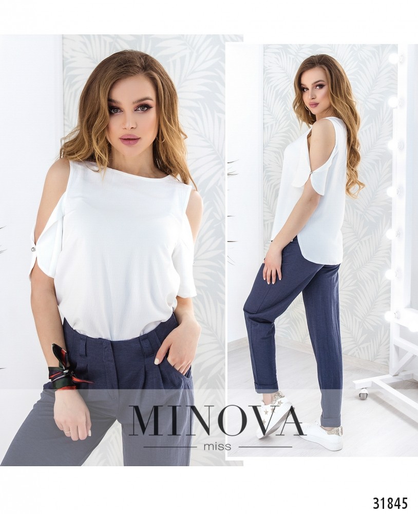 44 р-р: длина блузы 54см, длина рукава 25см, обхват рукава 33см, ОГ – 94см, ОТ – 96см, ОБ – 98см.