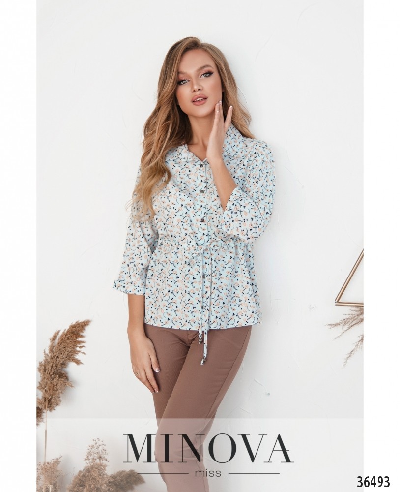 Легкая нарядная рубашка для твоего офисного дресс-кода или официального мероприятия. Рубашка с отложным воротничком, тремя пуговицами от верха почти до подола. Через талию пропущен шнурок, так что ты можешь сделать прямой крой достаточно приталенным. На левой стороне груди расположен небольшой накладной карман. Рукава длиной ¾ , без манжет. Можно сочетать со строгими брюками, джинсами или юбкой-карандашом.