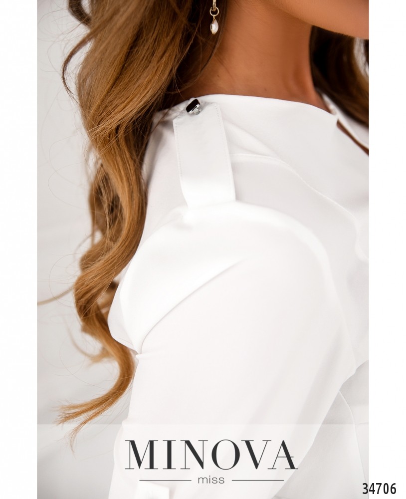 Чистый минимализм и строгость – это новая блуза из коллекции женских нарядов от Minova! Блуза с полукруглым вырезом горловины, от которого по центру располагается небольшой разрез и три декоративных пуговицы. На плечах – погончики с квадратными пуговицами на ножке, и такие же пуговицы с лентой дают возможность регулировать рукава, подворачивая их до локтя. В стандартном положении рукава полной длины, с манжетами, которые застёгиваются на одну пуговицу. На груди – небольшие диагональные вытачки снизу вверх. Застёжек и карманов нет. Прекрасный выбор для офисного наряда, можно носить навыпуск или заправлять в брюки или джинсы, а также расставлять цветовые акценты с помощью ярких аксессуаров. Украшение не входит в комплект. Пояс/аксессуар не входит в комплект.