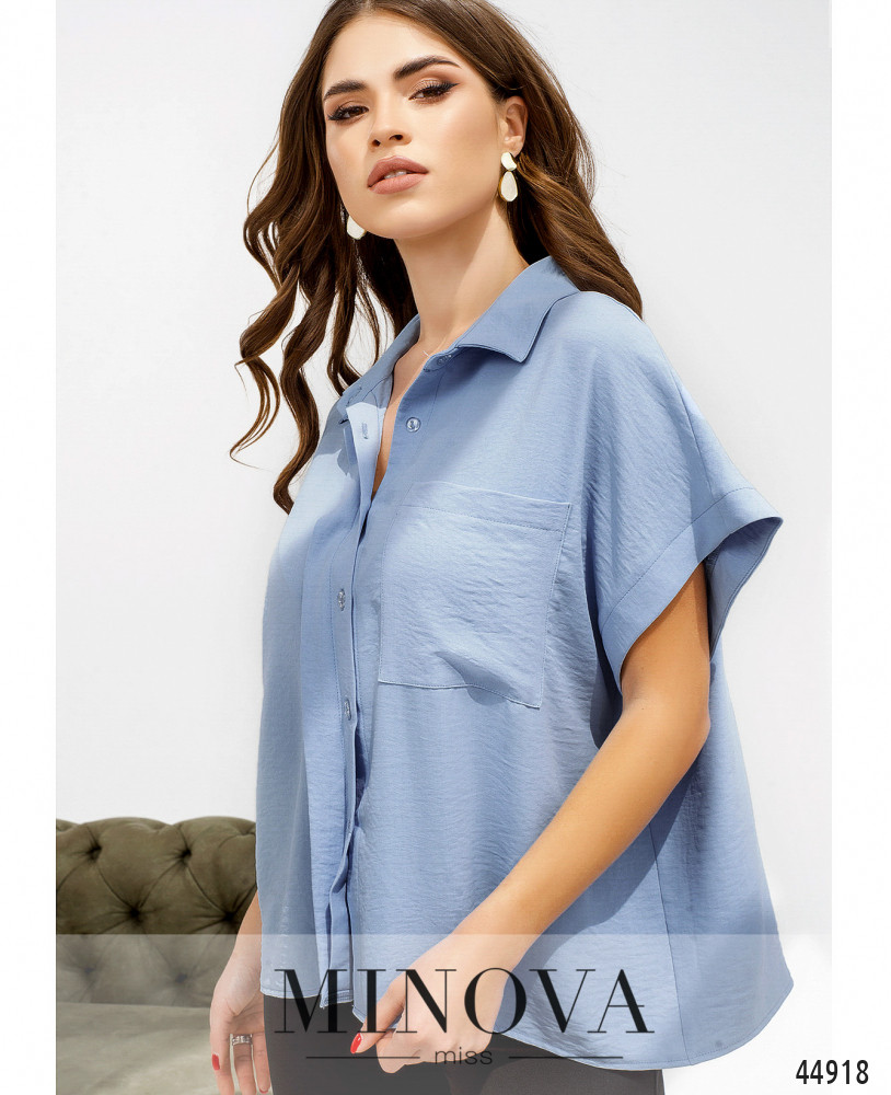 Стильная рубашка с отложным воротничком и спущенными рукавами. Застёжка потайная (супатная) - пуговицы спереди прикрыты планкой, от воротничка до низу. На груди накладной карман. Подкладки нет.