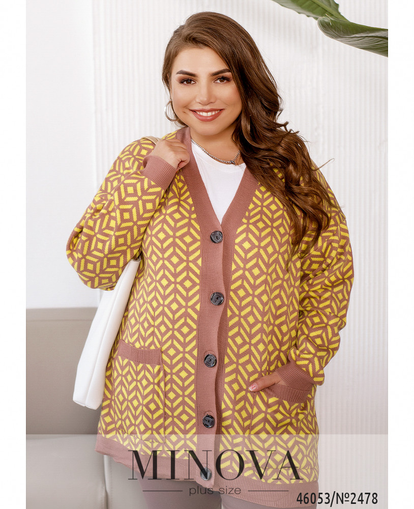 Мягкая стильная кофта-кардиган с актуальным геометричным принтом подойдет для прогулок и встреч с друзьями прохладными вечерами. Модель застегивается на ряд пуговиц спереди, дополнена накладными карманами по бокам и длинными рукавами с приспущенной линией плеч.