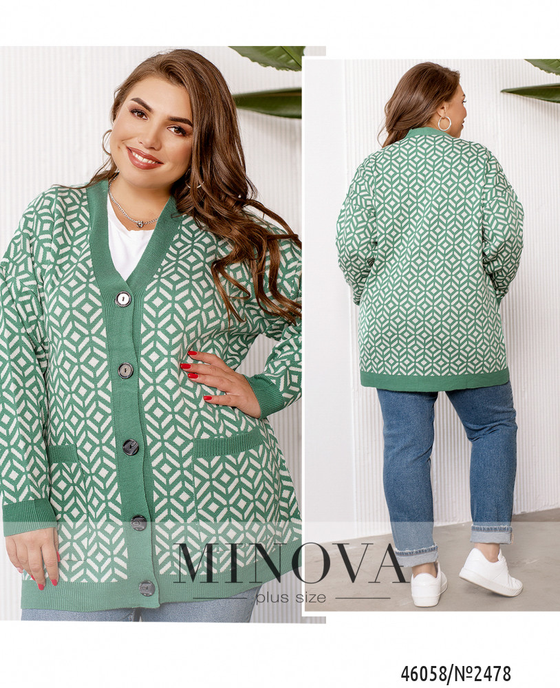 универсальный(50-60) р-р: длина кофты 77см, длина рукава от горловины 75см, обхват рукава 44см, ОГ - 120см, ОТ -116см, ОБ -118см.