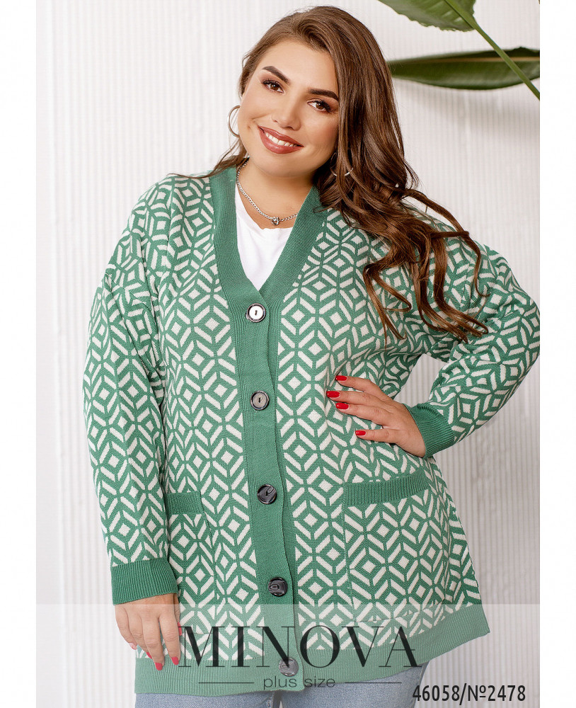 Мягкая стильная кофта-кардиган с актуальным геометричным принтом подойдет для прогулок и встреч с друзьями прохладными вечерами. Модель застегивается на ряд пуговиц спереди, дополнена накладными карманами по бокам и длинными рукавами с приспущенной линией плеч.