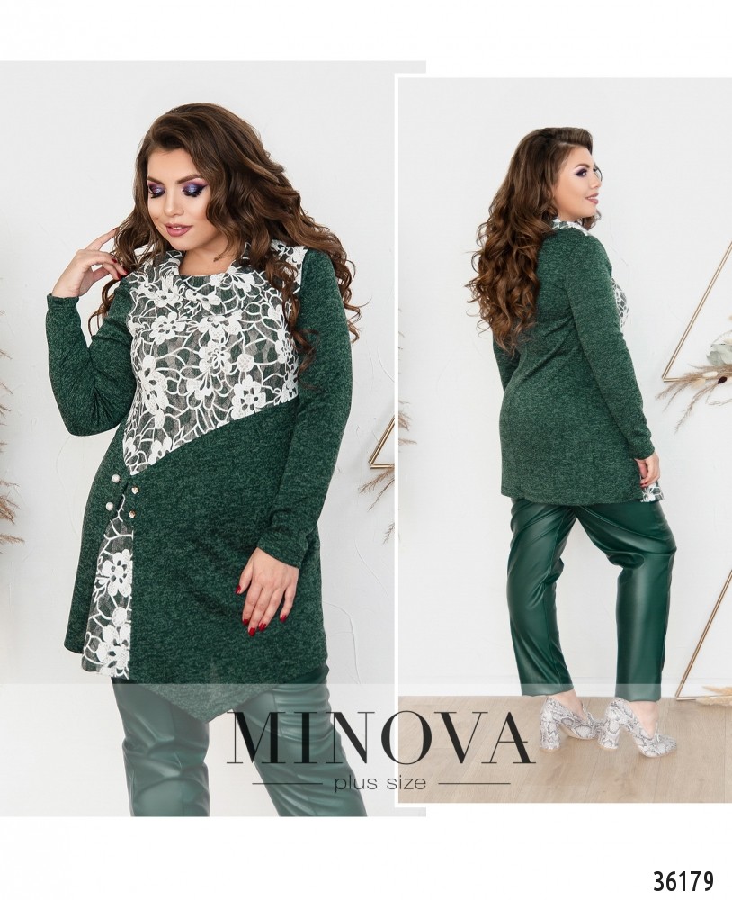 Мягкая, очень уютная и в то же время нарядная туника батал из свежего каталога женской одежды от Minova. Туника с асимметричным подолом: спереди длиннее, чем по спинке. Яркие цветовые акценты делают её особенно удачной для девушек с «прямоугольным» типом фигуры, но будут хорошо смотреться на любой фигуре. Застёжек и карманов нет, воротник – объёмный мягкий хомут. Справа на уровне бедра – две нарядные «жемчужные» броши. Рукава полной длины. Ткань тёплая, приятная к телу. Цветочная вставка – только спереди, спинка однотонная. Туника А-силуэта. Можешь носить её с джинсами или брюками и с любой удобной обувью.