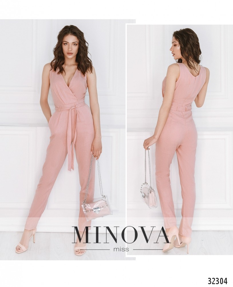 Идеальный наряд для работы, прогулок, вечеринки – и как это всё сочетается в одном комбинезоне от Minova? Очень просто: лёгкий льняной брючный комбинезон с запАхом подчеркнет женственность и добавит строгости благодаря зауженным брюкам и открытым плечам. Застёгивается на вшитую по спинке застёжку-молнию до талии. Пояс идёт в комплекте; на брюках – карманы. Прекрасный вариант для фигуры типа «прямоугольник», «песочные часы» или «груша». Аккуратные туфли-лодочки прекрасно дополнят романтический или деловой образ.