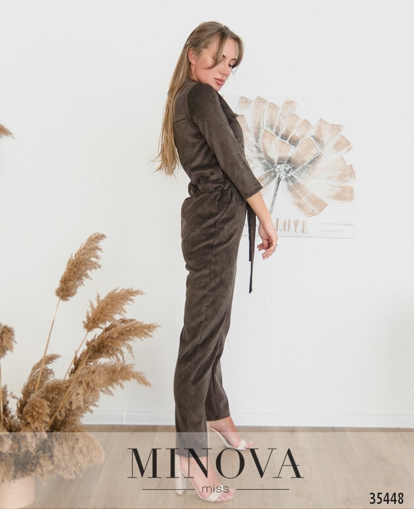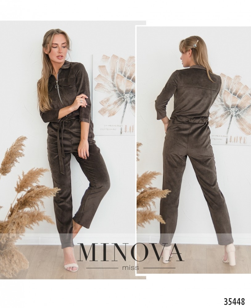Вельвет снова в моде, и это прекрасно, ведь он такой мягкий, уютный и тёплый! В новом каталоге женской одежды от Minova ты найдёшь очень минималистичные и строгие вельветовые комбинезоны, с гладкой подкладкой. Верх выполнен в виде рубашки, с отложным воротничком и двумя вместительными накладными карманами. По центру располагается змейка до пояса с круглым бегунком. Рукава полной длины. Брюки прямые, по бокам – врезные карманы. В пояс вшита широкая лента, которую можно затянуть и сделать силуэт более приталенным. Однотонность тёмной расцветки позволит выбирать самые яркие и привлекательные аксессуары! Обувь допустима любая.