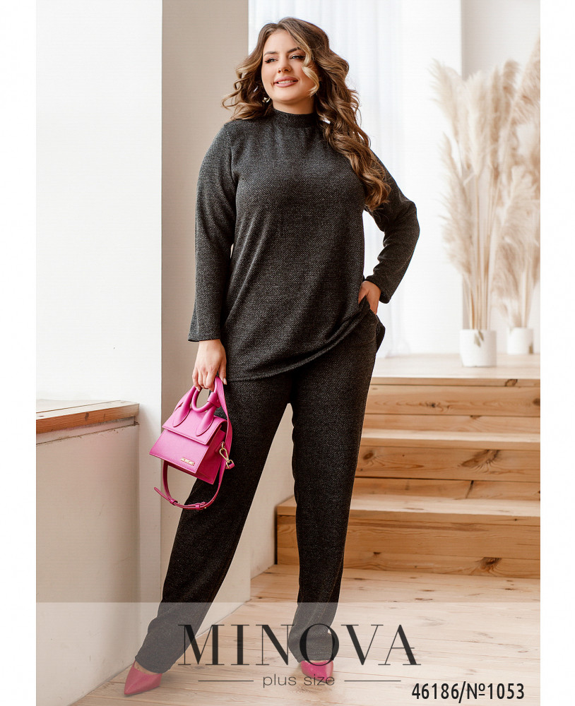 Женственный костюм, состоящий из туники и брюк, абсолютно по-разному выглядит в паре с изящными лодочками на шпильке, лоферами или кроссовками. Туника прямого кроя с длинными рукавами и воротником-стоечкой идеально дополнена лаконичными брюками в тон на резинке с карманами в боковых швах. Пояс НЕ входит в комплект.