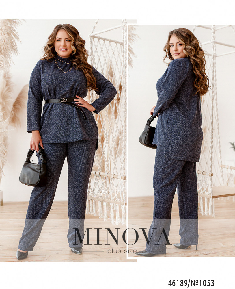 Женственный костюм, состоящий из туники и брюк, абсолютно по-разному выглядит в паре с изящными лодочками на шпильке, лоферами или кроссовками. Туника прямого кроя с длинными рукавами и воротником-стоечкой идеально дополнена лаконичными брюками в тон на резинке с карманами в боковых швах. Пояс НЕ входит в комплект.