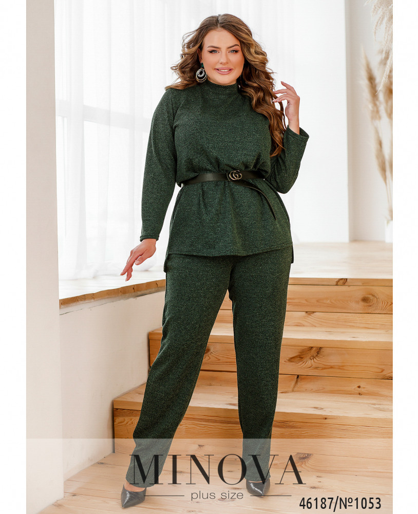 Женственный костюм, состоящий из туники и брюк, абсолютно по-разному выглядит в паре с изящными лодочками на шпильке, лоферами или кроссовками. Туника прямого кроя с длинными рукавами и воротником-стоечкой идеально дополнена лаконичными брюками в тон на резинке с карманами в боковых швах. Пояс НЕ входит в комплект.