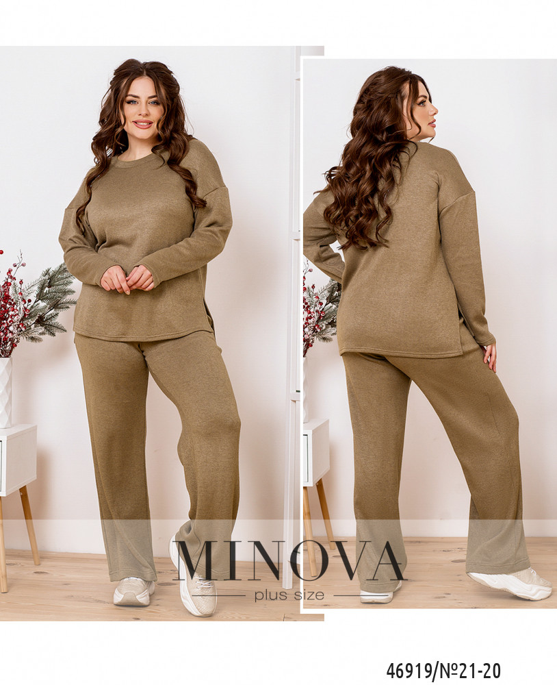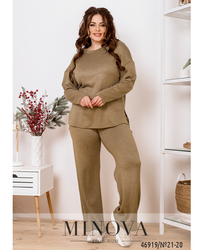 Мягкий и монохромный костюм, выполненный из ангоровой ткани, можно носить вместе или разделить, создавая различные образы с другими вещами. В комплект входят минималистичные брюки на резинке, которые идеально дополняет лаконичная кофта с полукруглым вырезом горловины и рукавами с приспущенной линией плеч.