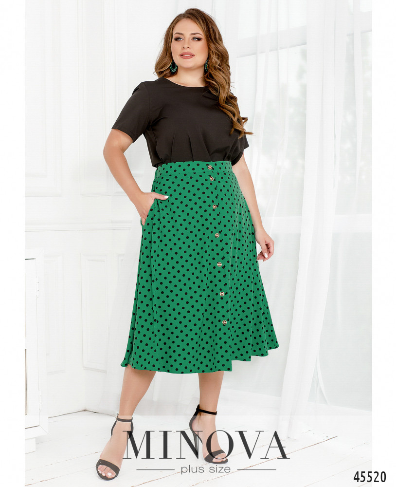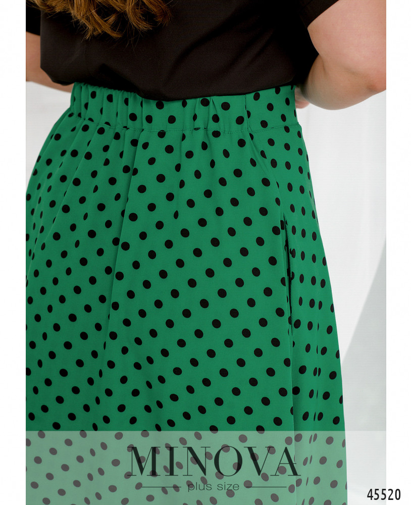 Очаровательный летний костюм, состоящий из однотонной блузы и юбки с актуальным принтом в горошек, станет идеальным дополнением вашего базового гардероба. Минималистичная блуза с короткими рукавами и ассиметричным подолом дополнена юбкой миди с резинкой, вставленной в линию талии по спинке, и расстегивающимися пуговицами по центру спереди. Контрастный принт и лаконичный фасон делают этот костюм одновременно простым и эффектным.