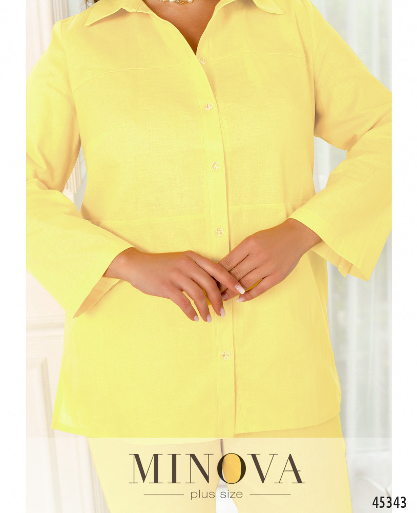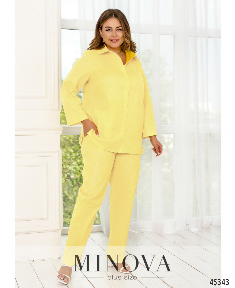 Легкий практичный костюм в стиле casual, выполненный из натурального льна, станет удачным пополнением вашего базового гардероба. Рубашка классического кроя обращает на себя внимание в первую очередь полочкой, состоящей из трех частей, а также рукавами, длину которых можно регулировать и фиксировать на пуговицу в районе локтя. Кроме того, в состав костюма входят комфортные брюки на резинке с карманами в боковых швах и тонкими манжетами внизу.