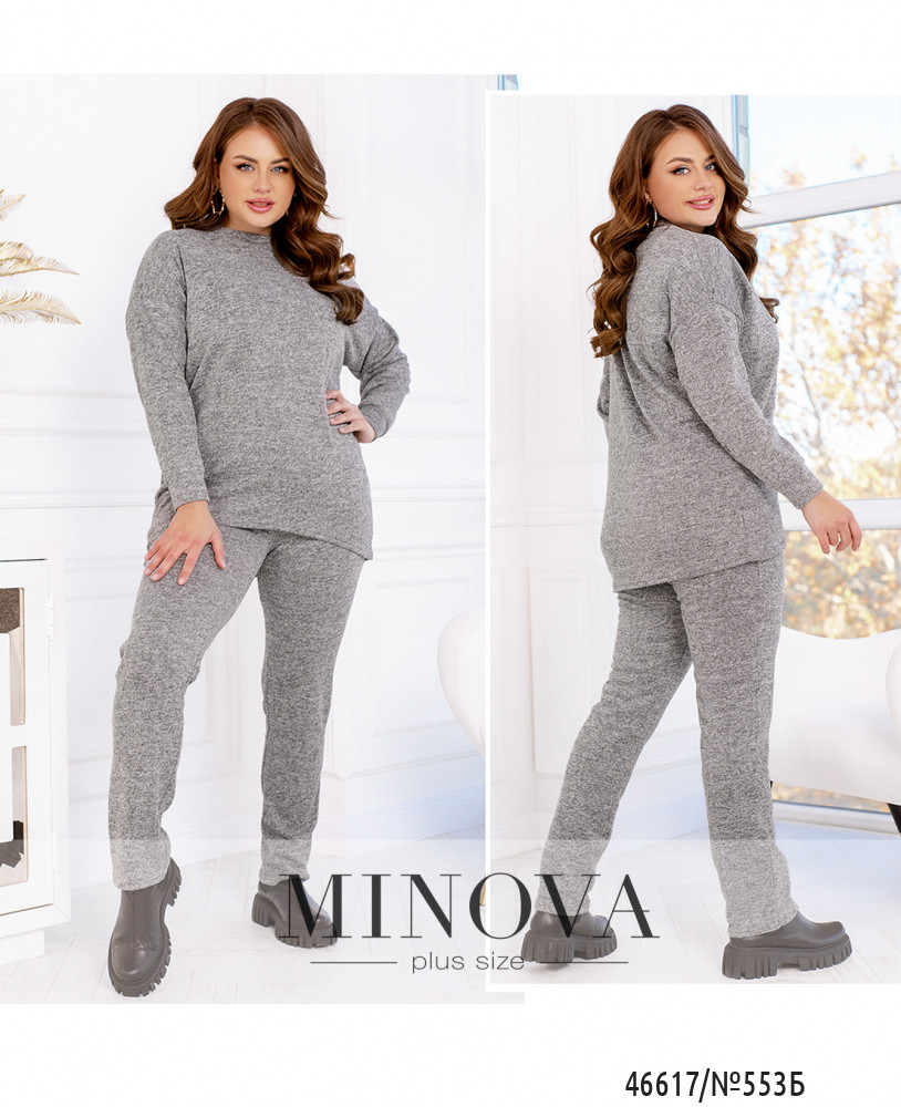 Мягкий и монохромный костюм, выполненный из ангоровой ткани, можно носить вместе или разделить, создавая различные образы с другими вещами. В комплект входят минималистичные брюки на резинке с карманами, которые идеально дополняет лаконичная кофта с полукруглым вырезом горловины и рукавами с приспущенной линией плеч.