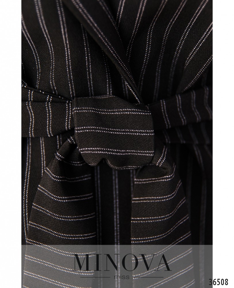Тонкая полоска снова в тренде! Minova представляет модель костюма-двойки из тонкой лёгкой ткани. Фасон оригинальный: пиджак без застёжек и карманов, но с поясом. Неширокие лацканы, рукава чуть короче полной длины, с подворотами и лентой на пуговке, но не регулируемые (пуговица декоративная). Пиджак без подкладки, но ткань изнутри светлая, однотонная. Брюки высокой посадки, через пояс пропущен шнурок и вшита резинка, по бокам – врезные карманы, к низу слегка заужены. Отлично сочетается и с блузой, и со свитшотом, и с однотонной футболкой. Обувь предпочтительна классическая.