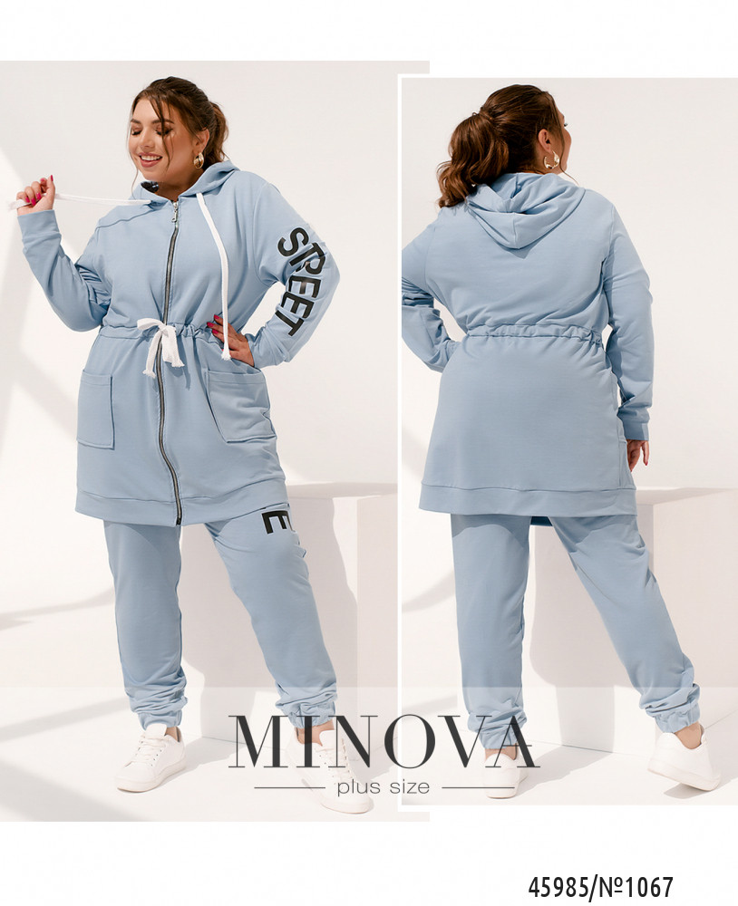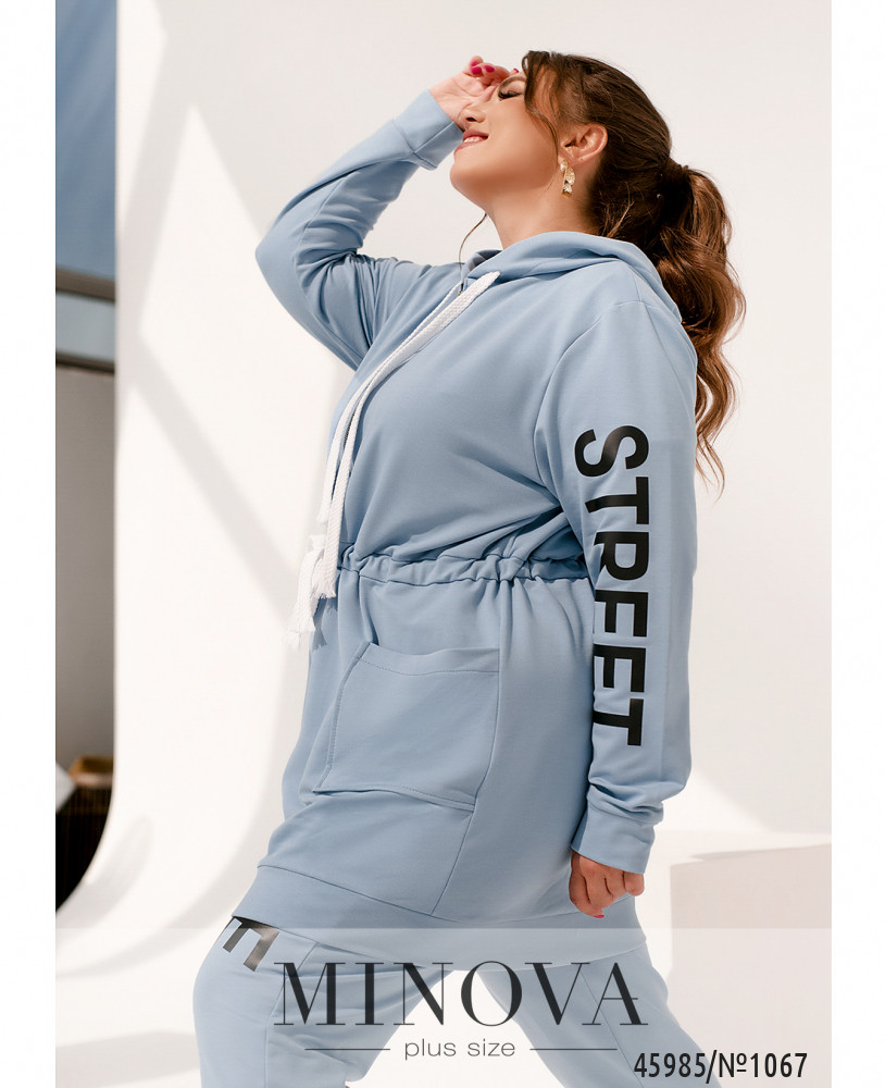 Мягкий практичный спортивный костюм идеально подходит для встреч с друзьями или прогулок по парку. В комплект входит удлиненная кофта на змейке с капюшоном и кулиской на талии, позволяющей сделать акцент на талии. Ее дополняют брюки-джоггеры в тон с карманами и резинкой, вшитой в манжеты и по линии талии.