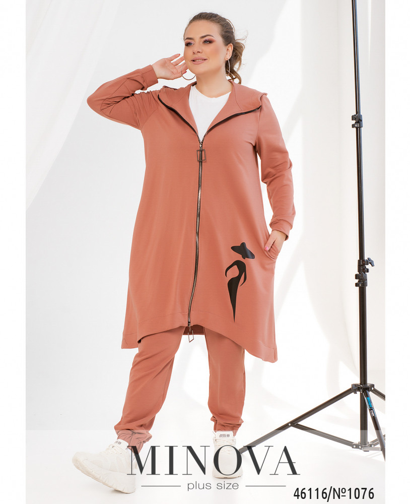 Яркий и комфортный спортивный костюм является поистине уникальной вещью, ведь он подходит всем, независимо от фигуры и возраста. Длинный кардиган на змейке с карманами, капюшоном и ассиметричным низом, удлиненным по спинке, идеально дополнен лаконичными брюками-джоггерами с карманами и резинками, вшитыми по линии талии и по низу штанин.