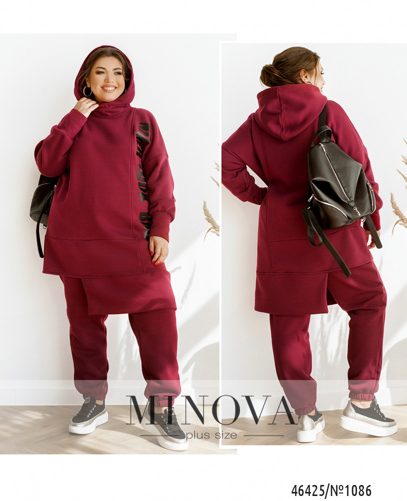 Яркий спортивный костюм, дополненный контрастными принтами, не только очень теплый, но и комфортный. В комплект входят лаконичные брюки-джоггеры с карманами в боковых швах и резинками, вшитыми по линии талии и по низу штанин, а также удлиненная туника-худи в тон с ассиметричным низом, дополненная капюшоном и длинными рукавами с приспущенной линией плеч. Пояс НЕ входит в комплект.