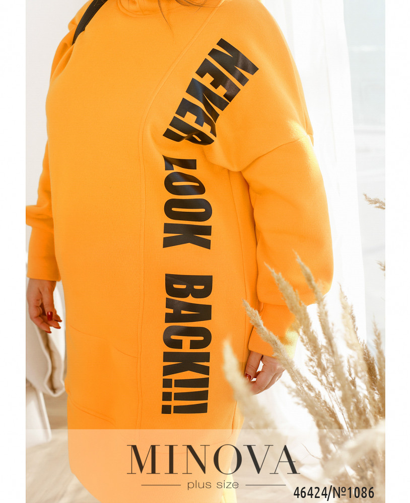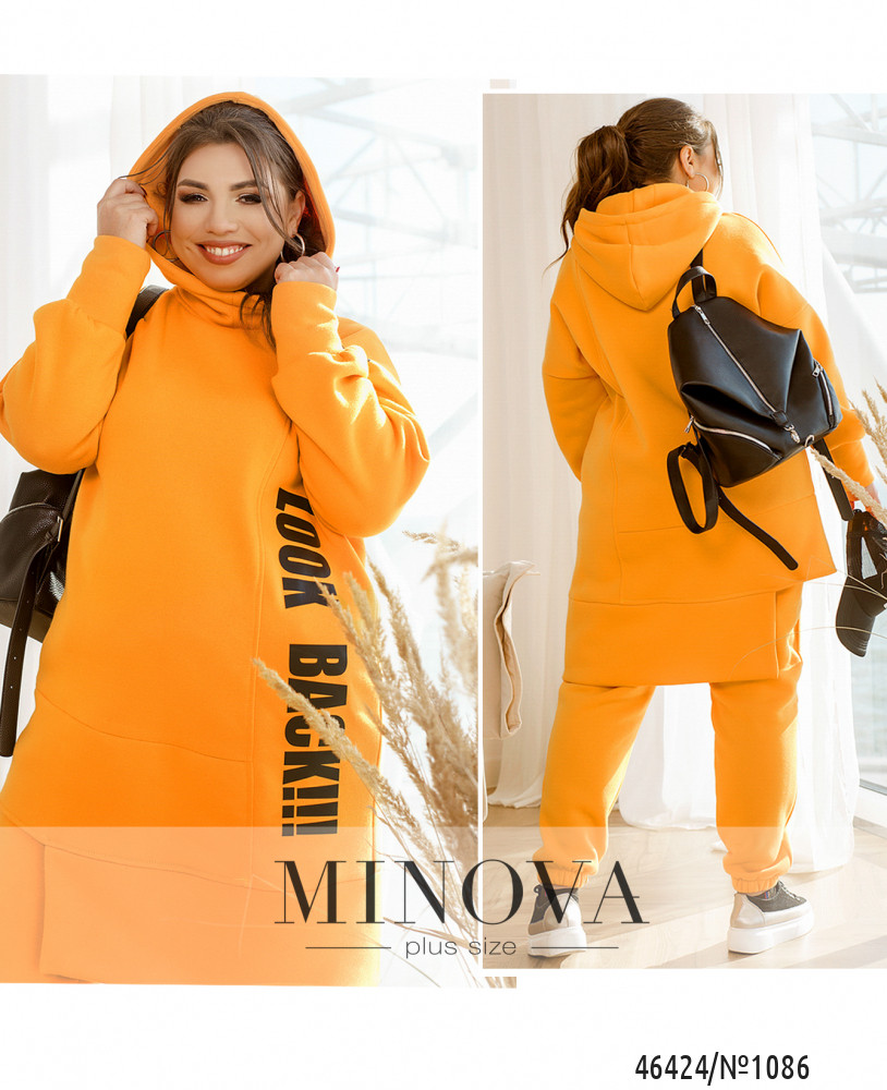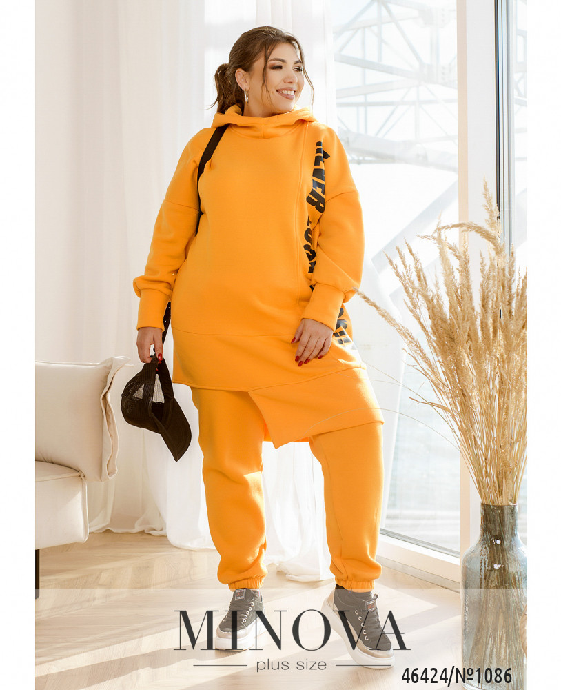 Яркий спортивный костюм, дополненный контрастными принтами, не только очень теплый, но и комфортный. В комплект входят лаконичные брюки-джоггеры с карманами в боковых швах и резинками, вшитыми по линии талии и по низу штанин, а также удлиненная туника-худи в тон с ассиметричным низом, дополненная капюшоном и длинными рукавами с приспущенной линией плеч. Пояс НЕ входит в комплект.