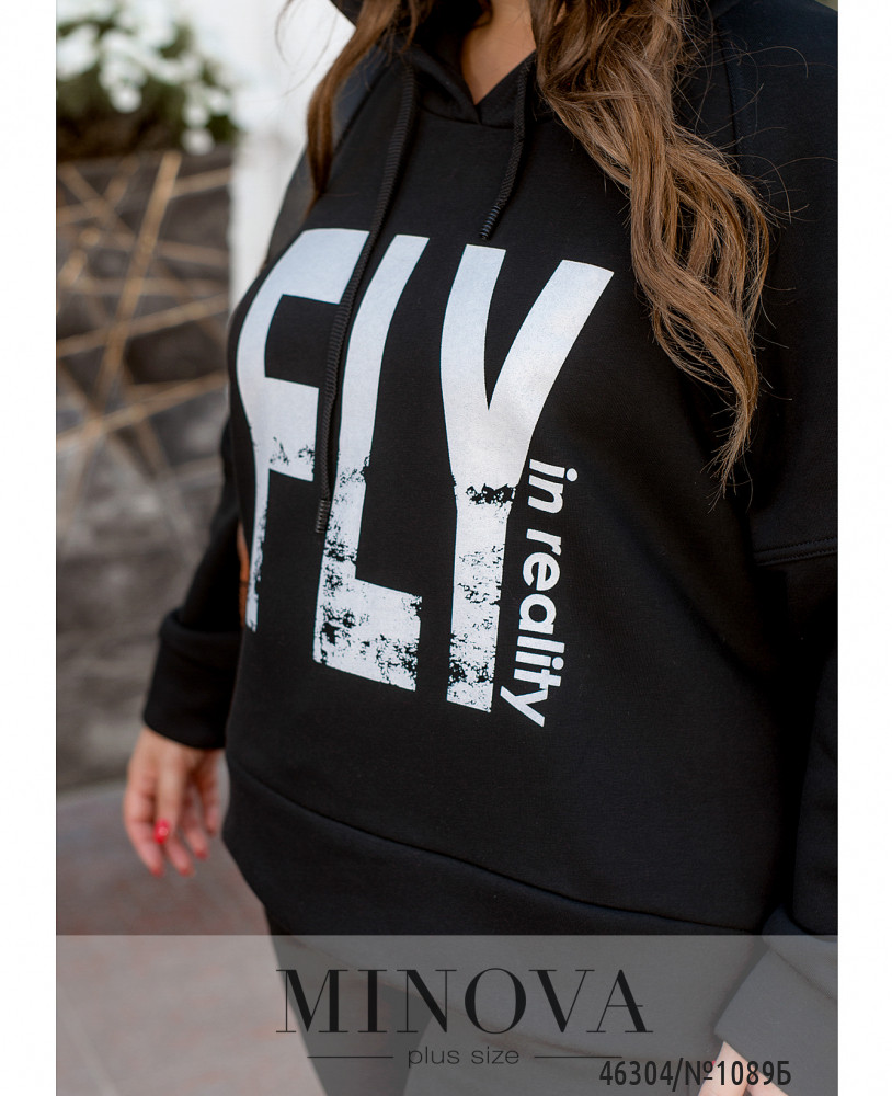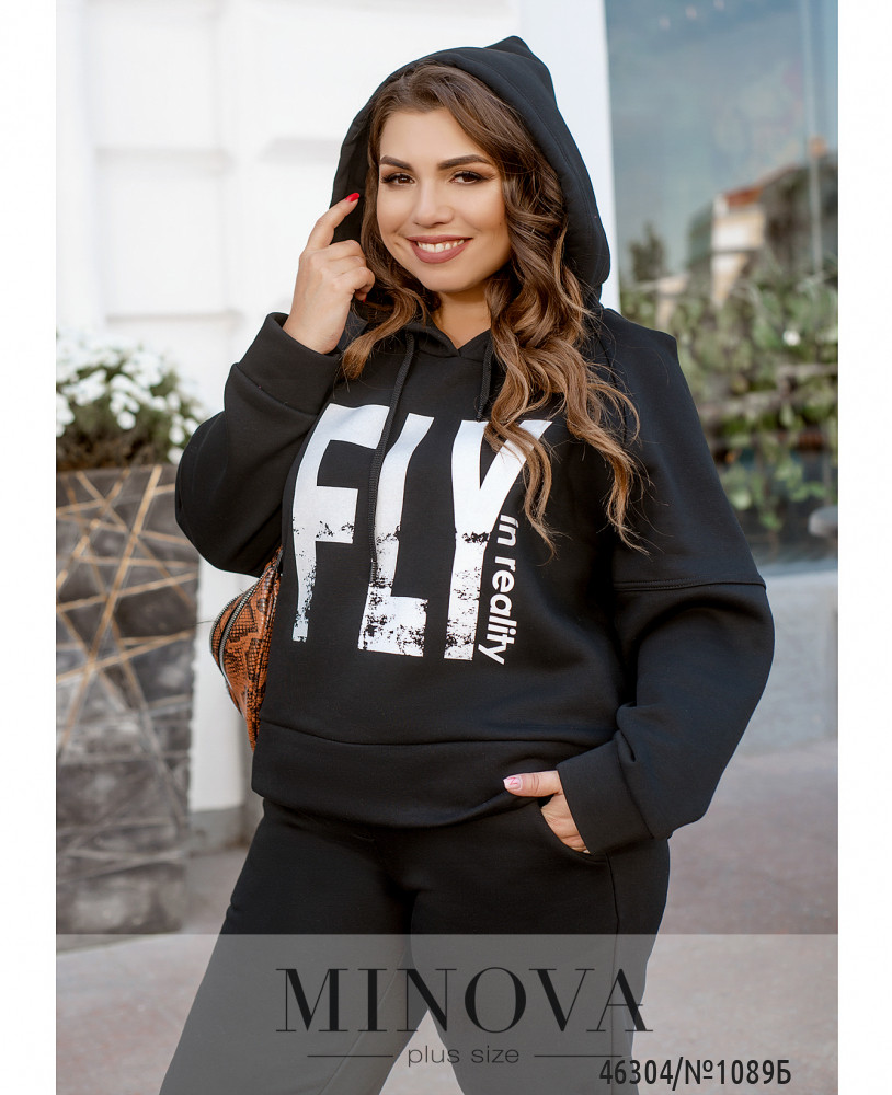 Яркий спортивный костюм – это одежда, проверенная временем. Такой образ – универсальное решение для любой модницы в холодное время года. В комплект входят спортивные брюки-джоггеры на резинке с карманами и манжетами, а также лаконичное худи с капюшоном, украшенное декоративным принтом.