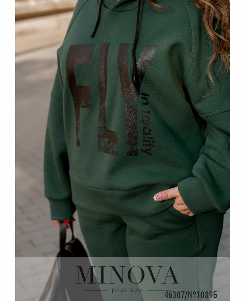 Яркий спортивный костюм – это одежда, проверенная временем. Такой образ – универсальное решение для любой модницы в холодное время года. В комплект входят спортивные брюки-джоггеры на резинке с карманами и манжетами, а также лаконичное худи с капюшоном, украшенное декоративным принтом.