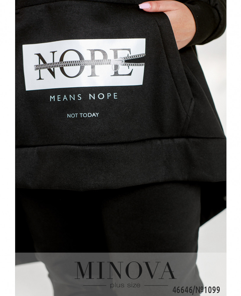 Яркий спортивный костюм нестандартного кроя не только дарит уверенность и комфорт, но и подчеркивает индивидуальный стиль. Минималистичные брюки-джоггеры с карманами в боковых швах и резинками, вшитыми по линии талии и по низу штанин, идеально дополняет необычная свободная туника с капюшоном и карманом-кенгуру, привлекающая внимание в первую очередь ассиметричным подолом. Пояс НЕ входит в комплект.