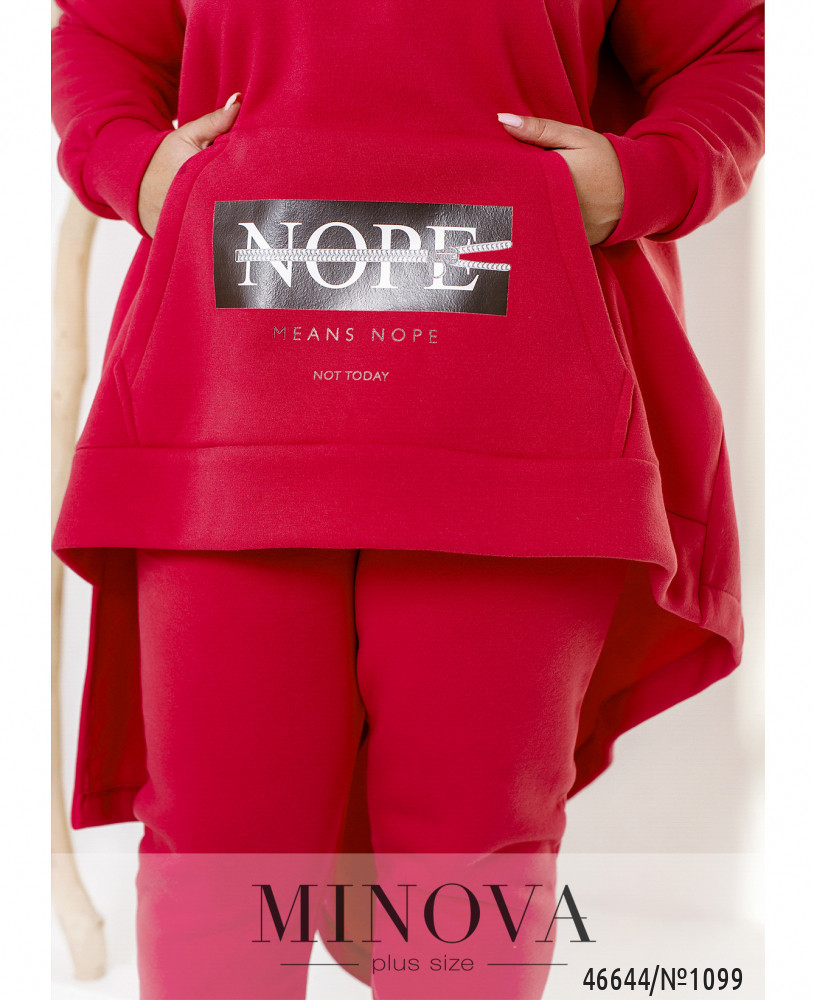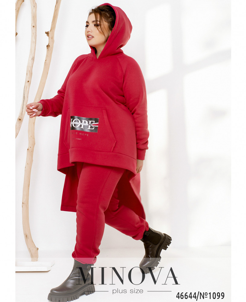 Яркий спортивный костюм нестандартного кроя не только дарит уверенность и комфорт, но и подчеркивает индивидуальный стиль. Минималистичные брюки-джоггеры с карманами в боковых швах и резинками, вшитыми по линии талии и по низу штанин, идеально дополняет необычная свободная туника с капюшоном и карманом-кенгуру, привлекающая внимание в первую очередь ассиметричным подолом. Пояс НЕ входит в комплект.