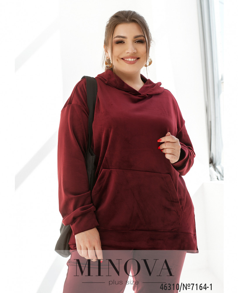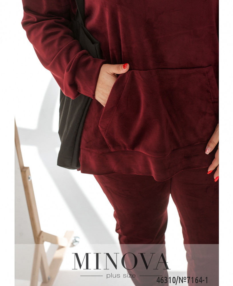 Теплый и комфортный спортивный костюм, выполненный из мягкого велюра, привлекает внимание необычной фактурой и удобством. Лаконичные брюки на резинке с карманами и манжетами дополнены уютным худи с капюшоном и карманом-кенгуру. Эта модель с характерным спортивным шиком порадует поклонниц практичной одежды на каждый день.