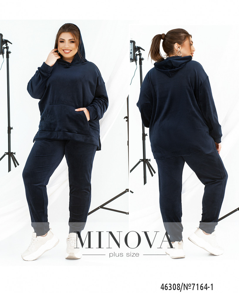 Теплый и комфортный спортивный костюм, выполненный из мягкого велюра, привлекает внимание необычной фактурой и удобством. Лаконичные брюки на резинке с карманами и манжетами дополнены уютным худи с капюшоном и карманом-кенгуру. Эта модель с характерным спортивным шиком порадует поклонниц практичной одежды на каждый день.