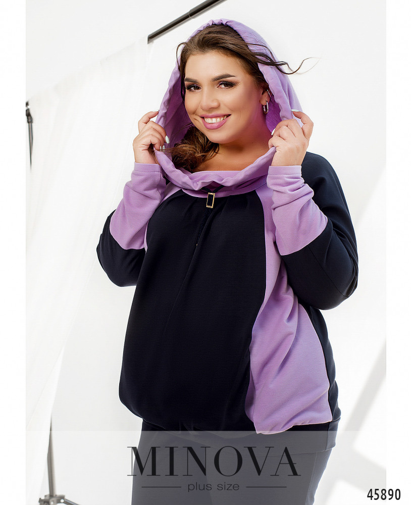 Контрастный спортивный костюм является поистине уникальной вещью, ведь он подходит всем, независимо от фигуры и возраста. Изюминкой данной модели является кофта с рукавами "реглан" и необычным воротником-капюшоном. Лаконичные спортивные брюки с карманами и резинкой, вшитой по линии талии, идеально дополняют комплект