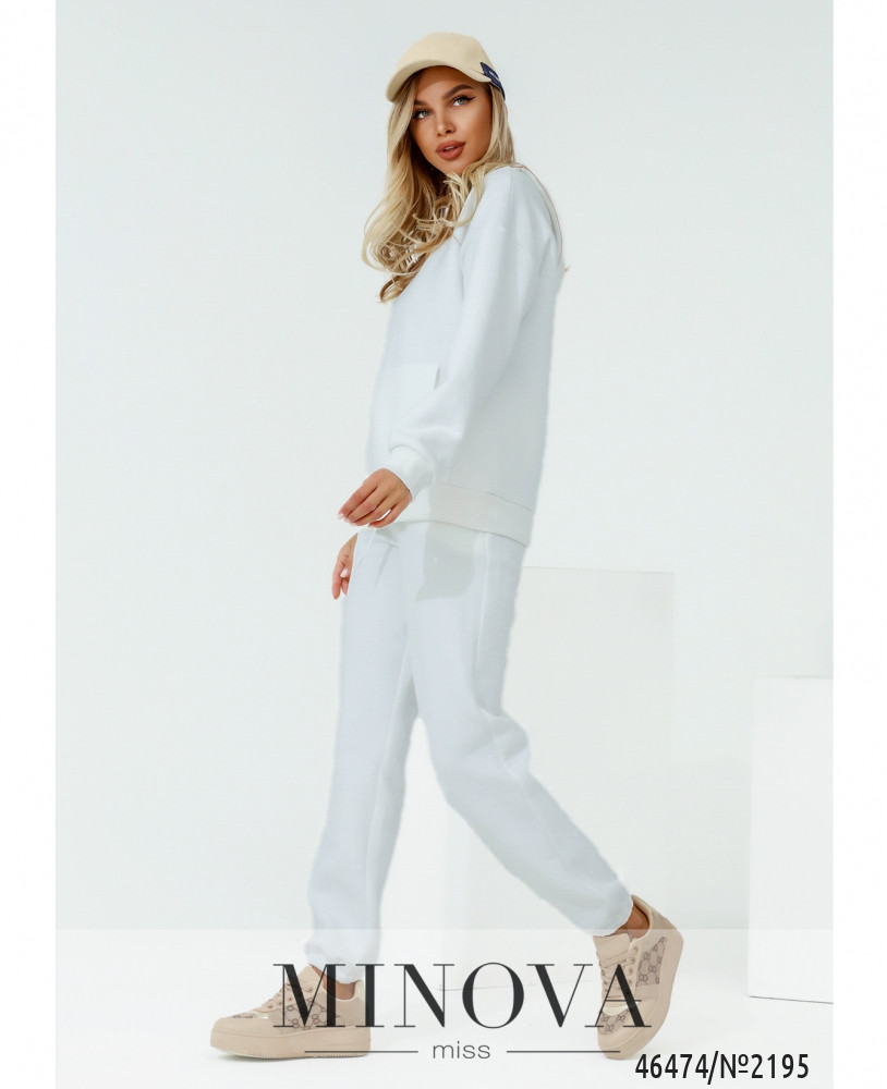 Монохромный яркий спортивный костюм привлекает внимание своей мягкостью и удобством. В комплект входят актуальные брюки-джоггеры с карманами и резинками, вставленными по линии талии и по низу штанин, а также лаконичное худи с капюшоном, большим карманом спереди и рукавами с приспущенной линией плеч.