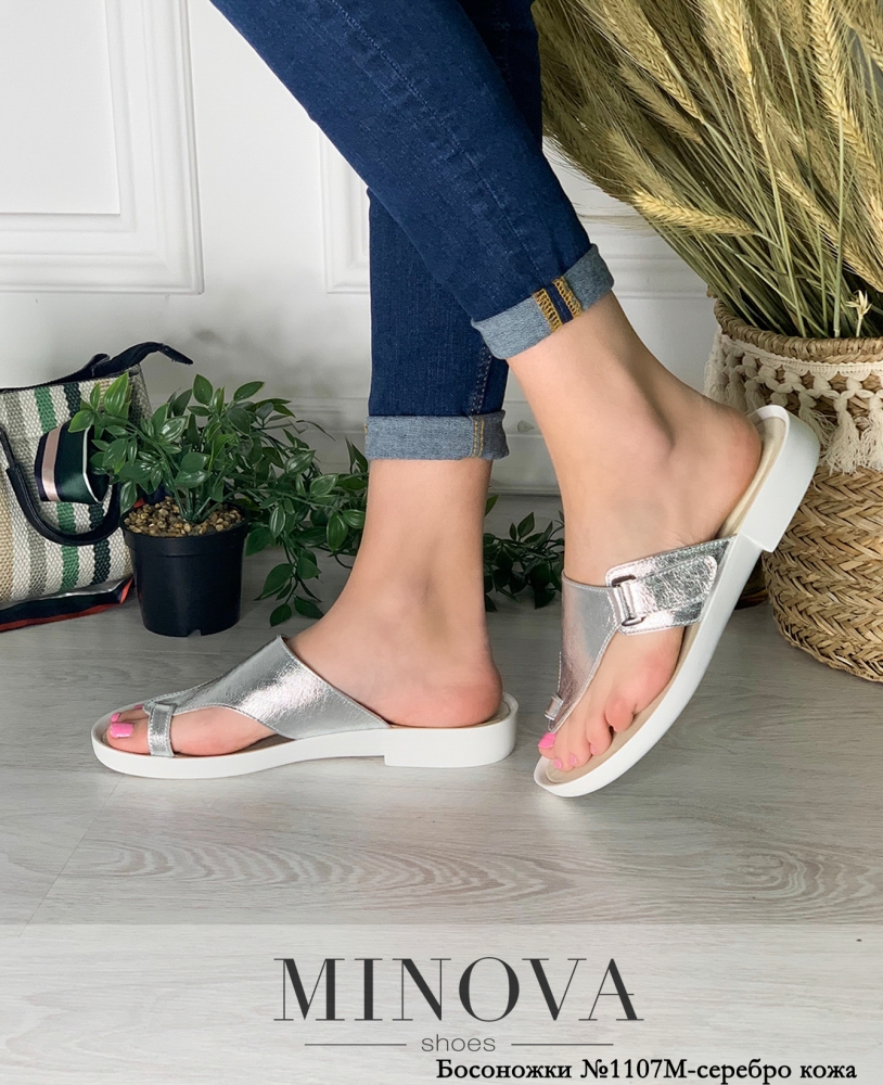 Кожаные мюли через пальчик на плоской подошве с уплотненной пяточкой. Мюли фиксируются застежкой-липучкой. Внутри кожаная стелька.
