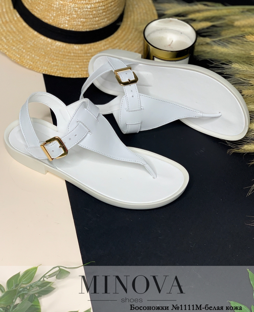 Кожаные сандалии через пальчик на тонкой плоской подошве и небольшом каблуке. Мыс через петлю соединяется с ремешком. Пяточка фиксируется перепонкой. Внутри кожаная стелька.