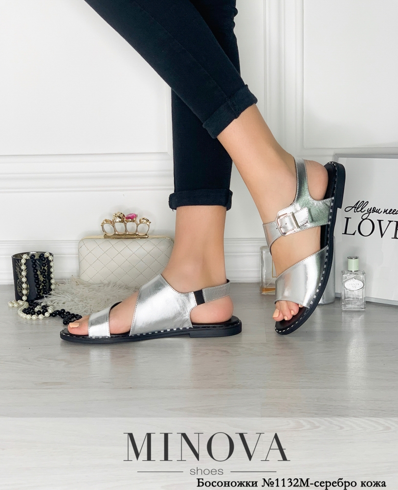 Кожаные босоножки на плоском ходу с небольшим каблуком. Босоножки состоят из широких фигурных полос. Верхняя полоса с пряжкой. Задник прорезинен. Внутри кожаная стелька. Подошва оформлена блестящим рантом.