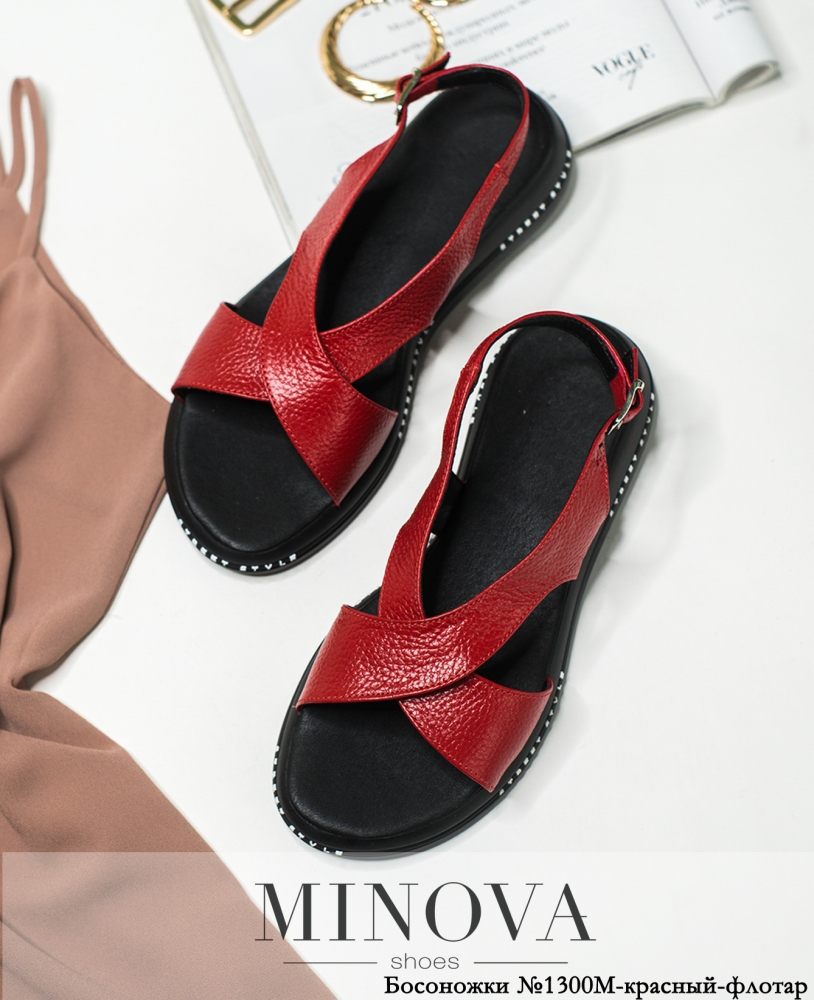 Изящные босоножки из натуральной кожи, охватывающие ногу кожаными лентами крест-накрест. Застёжка с маленькой пряжкой - на щиколотке сбоку. Подошва плотная, гибкая, с декором и рифлением сбоку.